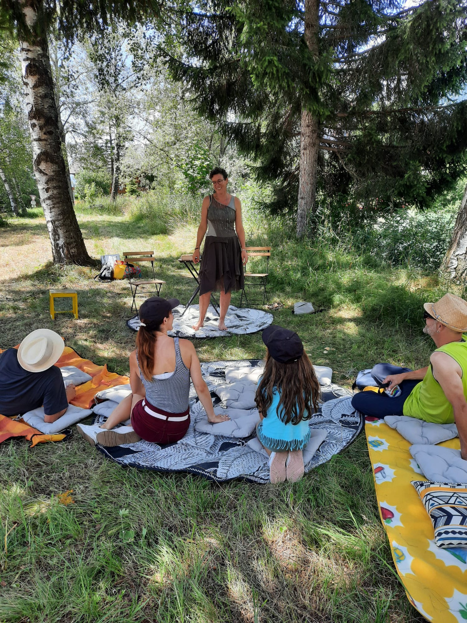 Entre randonnées sur les bisses, sorties scolaires, anniversaires ou activités nature, j'aime endosser mille casquettes. Créatrice d’activités, animatrice et conteuse, j'entraîne petits et grands dans mon univers vivant et poétique.